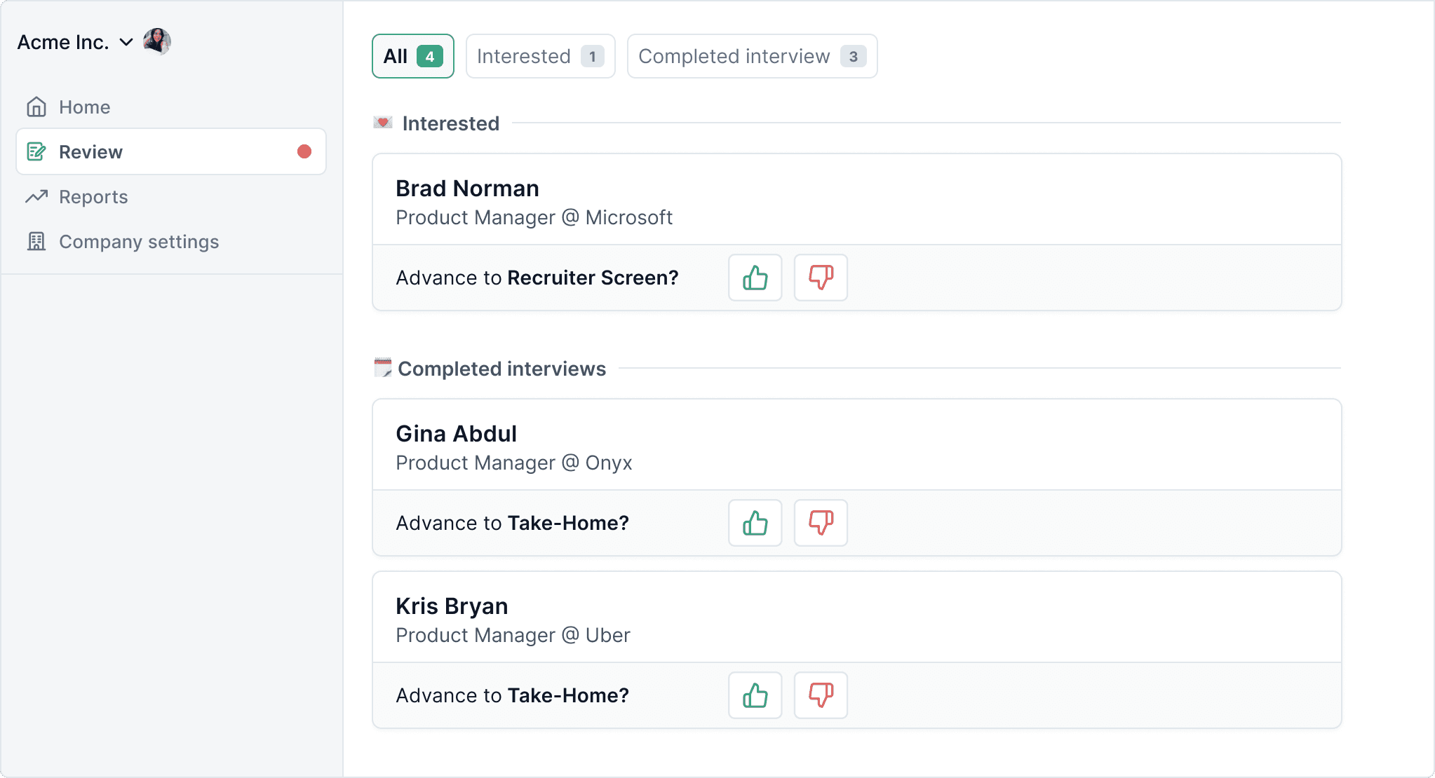 ⟡ With just a click, schedule an interview or send a polite rejection note