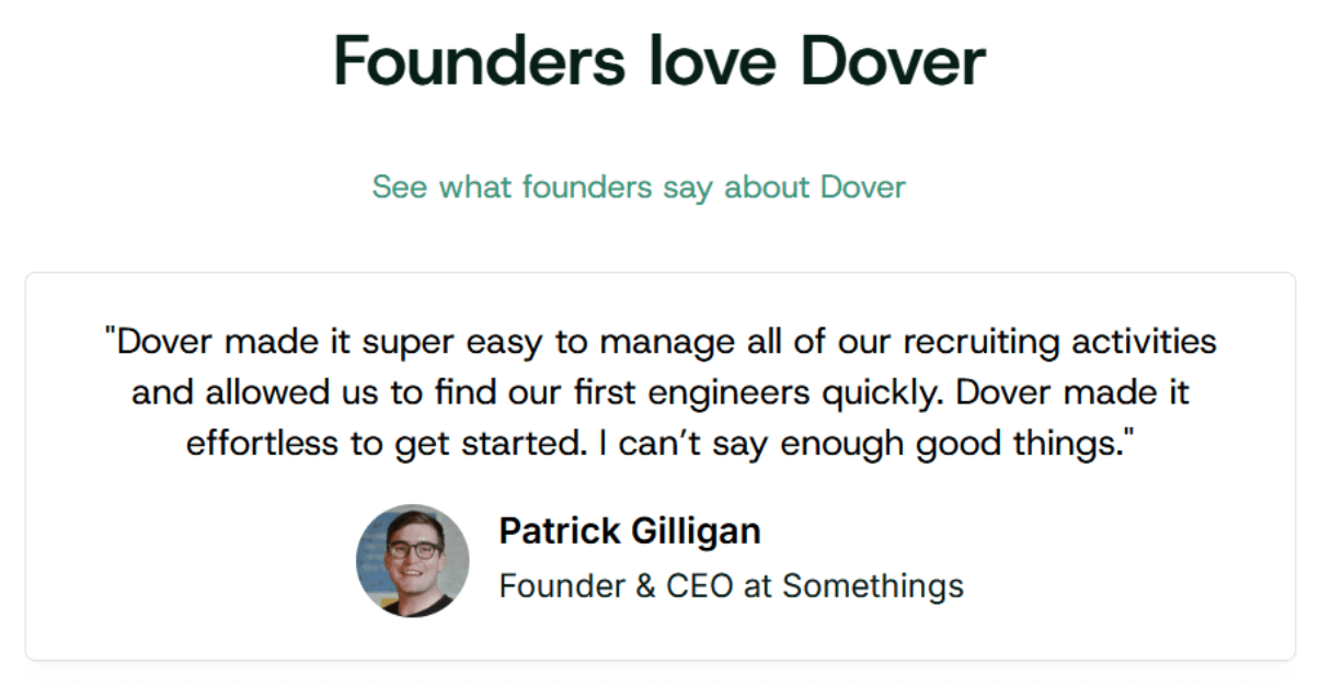Dover's fractional model means startups pay only for the help they need without long-term contracts, making it ideal for companies managing tight budgets and fluctuating hiring needs.