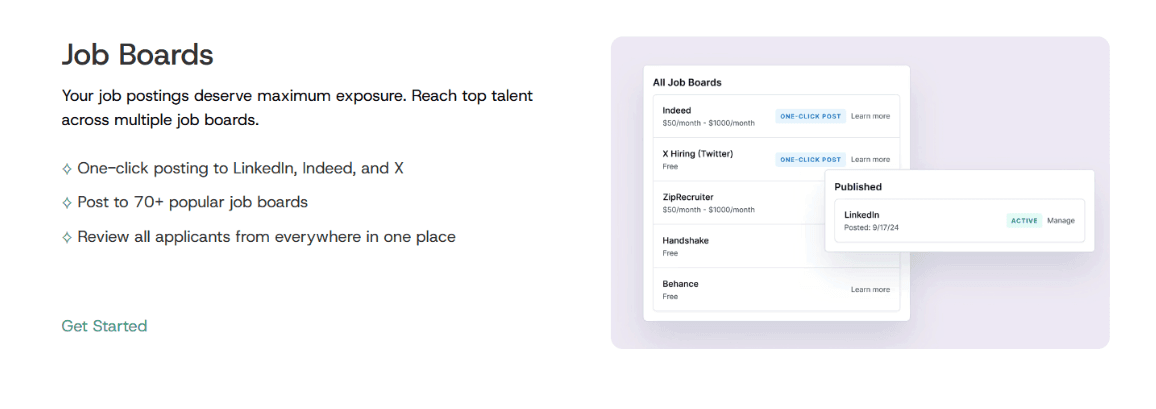 The free ATS removes a major expense that typically costs startups thousands annually. You get AI-powered candidate scoring, one-click job board posting to 70+ sites, and integrated sourcing tools, all without subscription fees.