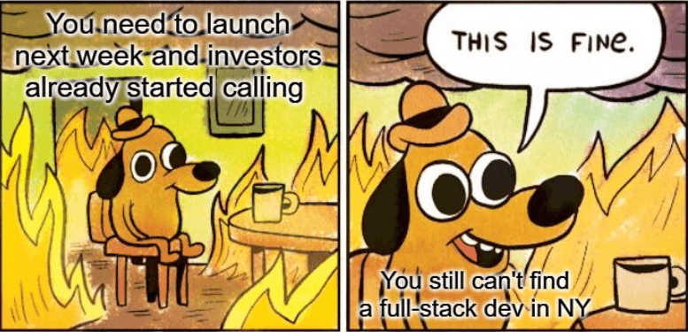 The founding team is spread too thin and can’t afford to drag hiring for months.