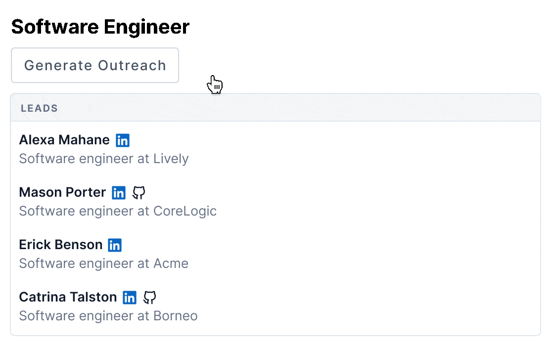 Your candidate outbox shows you a shortlist of top talent that meets your criteria. From here, you can edit Dover’s automatically generated (and personalized!) outreach for each candidate.
