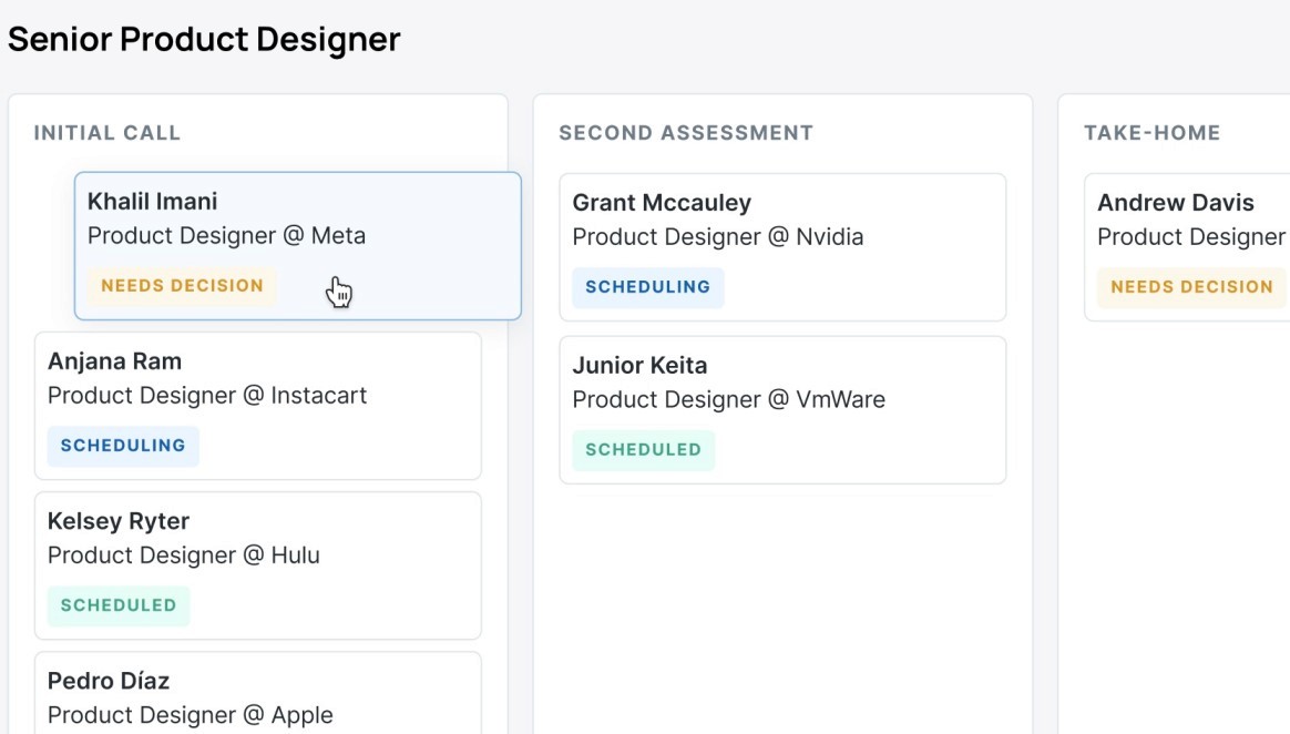 Free ATS built for speed: Unlimited jobs and users, set up in minutes. Drag candidates between stages, ping feedback in Slack, and surface bottlenecks instantly. Learn more about Dover's free ATS.