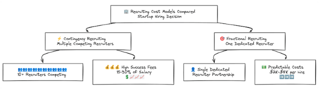 The cost difference becomes even more dramatic when you're hiring multiple people using contingency model. Reducing your recruiting budget while improving quality of hires become key during growth phases. Fractional recruiting solves this by fitting into your budget and following your speed of hiring.