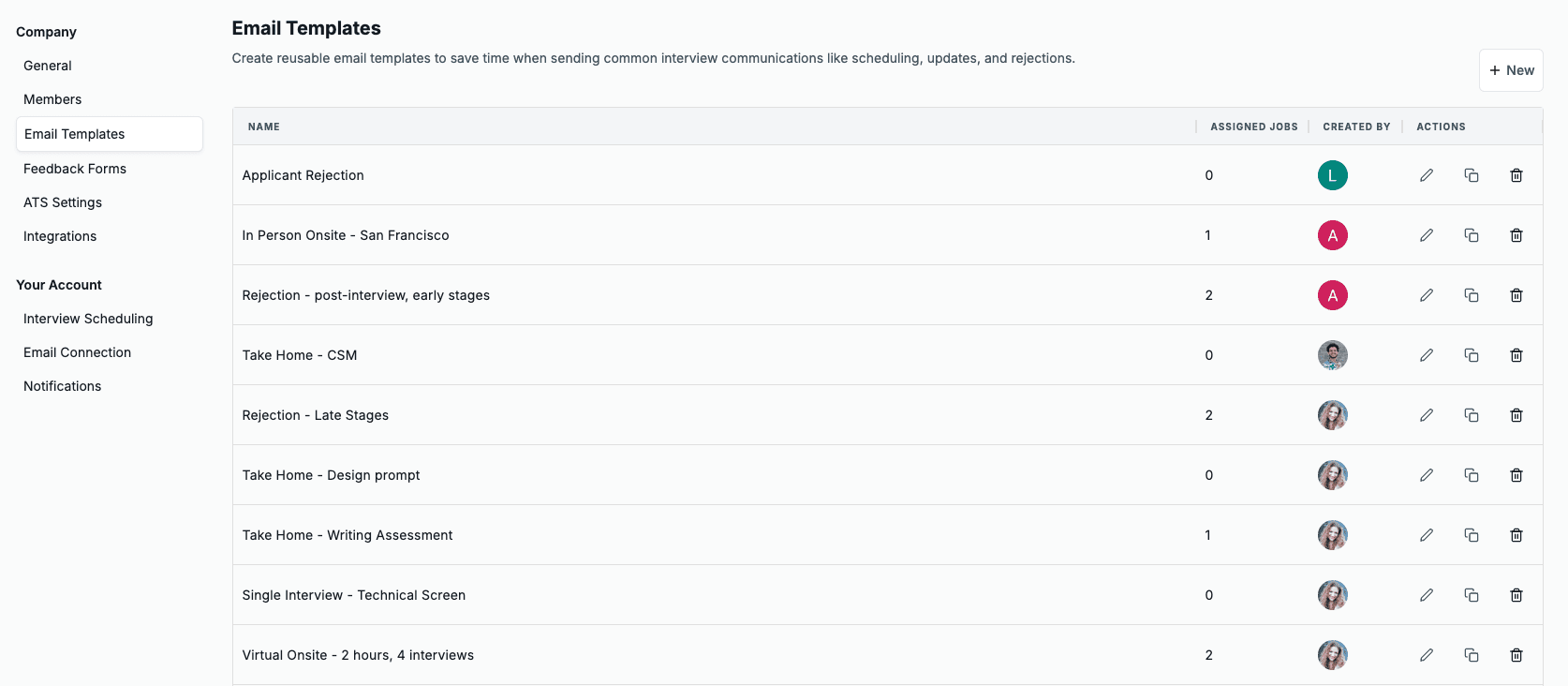 Don’t want to create custom templates? No worries! Dover has ✨ smart reply ✨ scheduling and rejection templates for all interview stages.