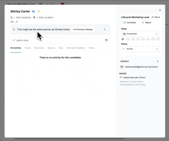 When a candidate shares their preferred name, title, or contact details, you can update their info effortlessly with the click of a button.