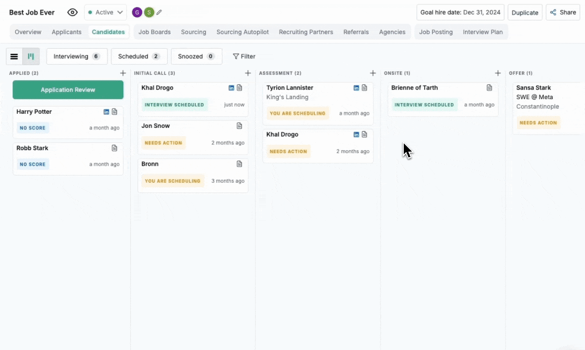 Not ready to move forward with a candidate? Snooze candidates with a click, automatically un-snoozing them after your selected time period and notifying relevant team members.