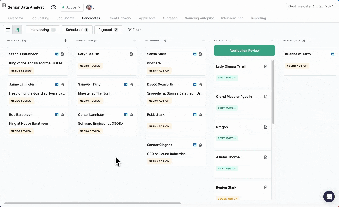 See all your applicants and leads alongside your candidates in our streamlined kanban view.