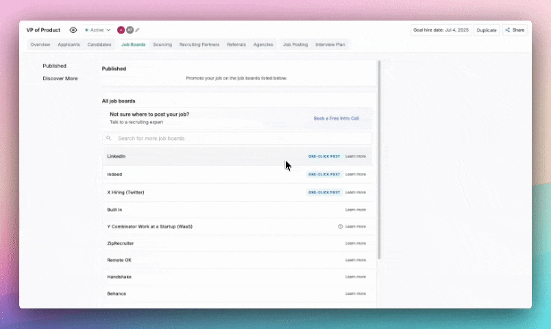 We've updated and streamlined our 1-click integrations with LinkedIn, Indeed, and X Hiring in our free ATS. The new job board integrations simplify pricing tiers and makes posting faster than ever. Get your jobs posted quickly and easily to major job boards to attract top applicants.