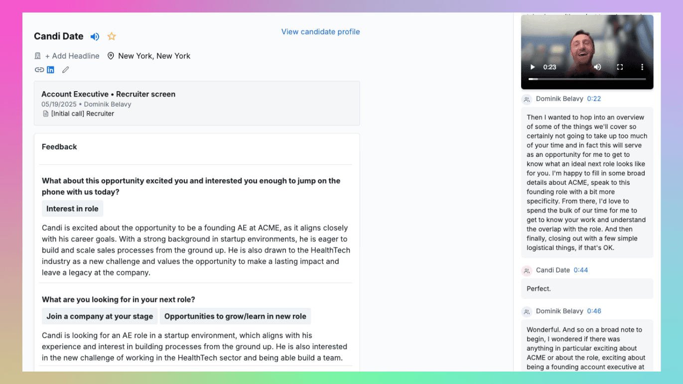 AI Notetaker is now available to all Dover users for free! When it joins your Google Meet interviews, it automatically captures the video and transcript — i can even fill out your feedback forms for you. No more frantically typing notes, just have real conversations while our AI handles the rest.