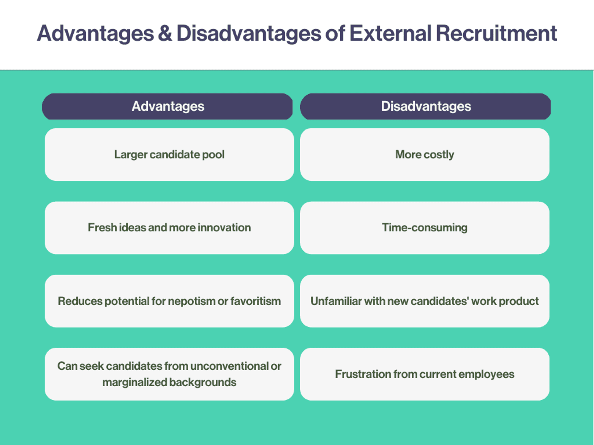 There are also some key downsides of internal recruiting: