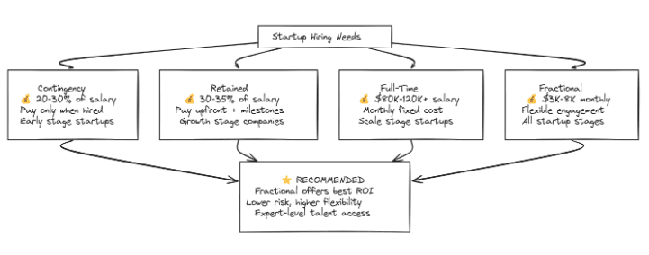 Early-stage startups should focus on fractional recruiting. You're typically hiring 1-3 people, making contingency fees overly expensive.