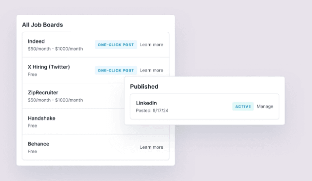 Sourcing Capabilities | Basic job board posting | Advanced sourcing tools and networks |