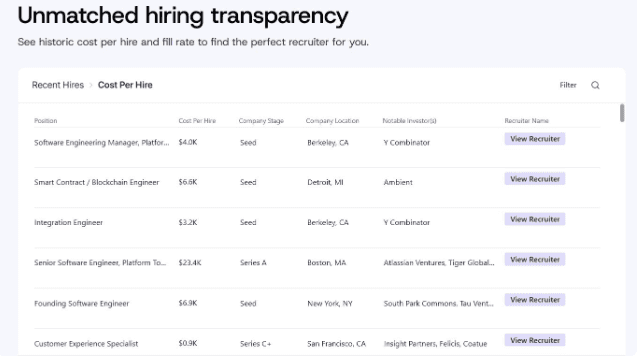 Industry Expertise: Our marketplace lets you choose recruiters based on their specific industry experience and track record by checking which companies they've recruited for and roles they've successfully filled.