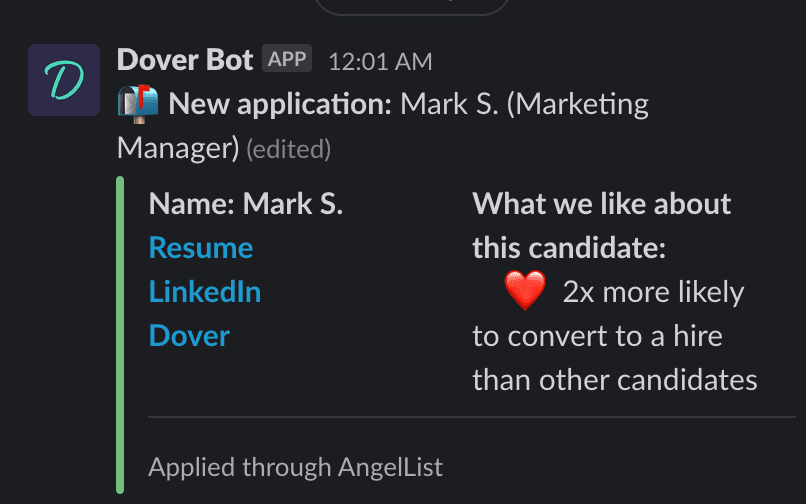 On Dover’s platform, we send personalized, automated outreach and only surface candidates that have responded with interest directly to you in Slack. On our backend, we ensure that anyone who doesn’t fit the bill receives a personalized rejection email. With our internal logic, we’re also able to forecast which candidates are most likely to respond and prioritize them in our outreach. This ensures that you’re only speaking to candidates you actually want to talk to who are also actively looking to make a change. We’ve saved hiring managers up to 60 to 80 hours per hire, reducing recruiting costs by a landslide.