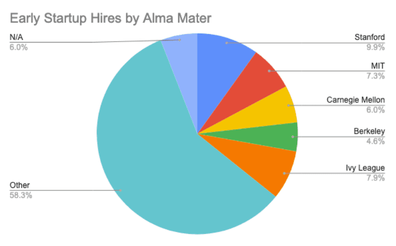 There’s some question as to whether the prevalence of Stanford, MIT, and Carnegie Mellon alums among early startup hires is due to truly superior qualifications, or whether there’s a form of availability bias at play. But founders who follow in the footsteps of the unicorns we’ve analyzed and recruit from these schools are likely to find success.