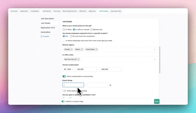 Make your company more appealing to top talent by sharing equity directly on your job postings. This transparency helps candidates understand your full compensation package upfront to help attract candidates who value ownership.